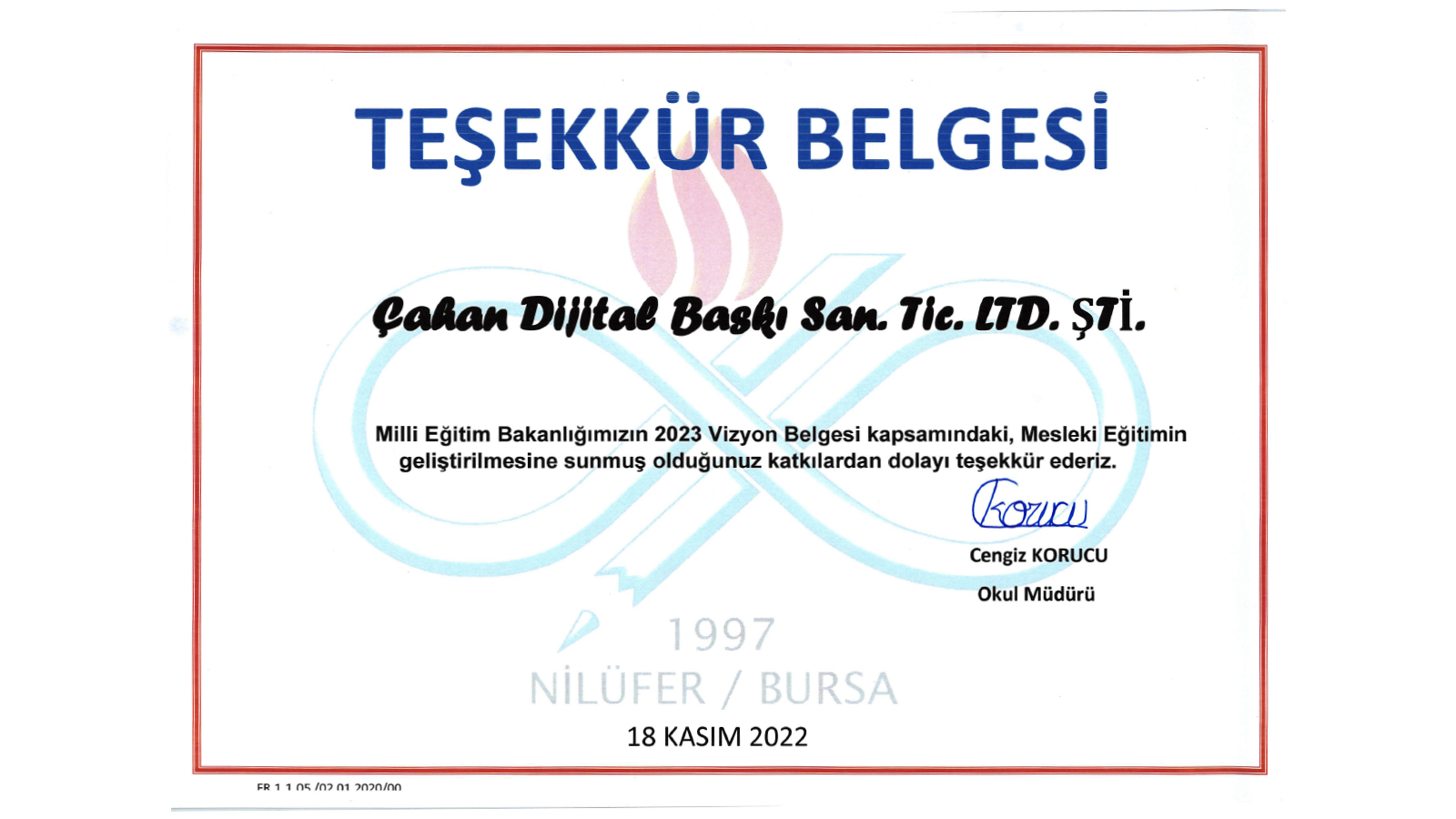 Coşkunöz Meslek Lisesi Teşekkür Yazısı