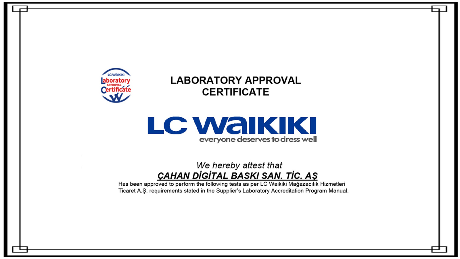 Çahan Dijital Baskı San Tic Aş. artık LCW den akredite bir laboratuvara sahiptir